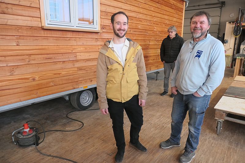 Jens Metzger, selbst Schreiner und Besitzer eines Tiny-House, besuchte mit einer Gruppe der Grünen in Aixheim die Firma Müller, die aktuell vor allem Waldkindergartenwagen und Schäferwagen baut.