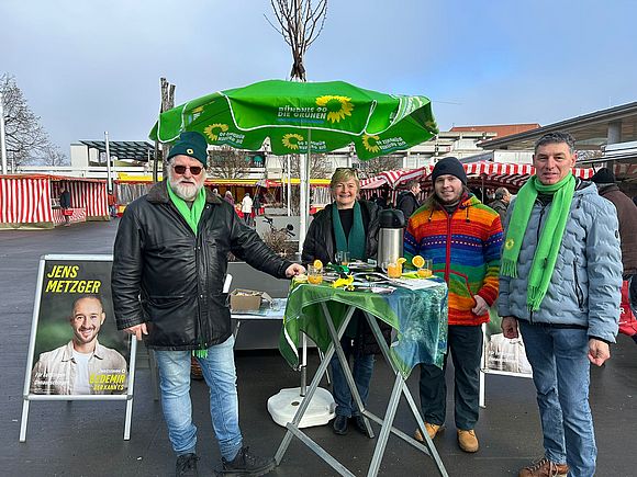 Bei eisiger Kälte standen die Grünen am letzten Samstag auf dem Marktplatz. Viele nette Gespräche ergaben sich – man kennt sich halt im Städtle und respektiert sich. Natürlich gab es auch Geschimpfe auf die Grünen, aber das gehört zur Demokratie dazu. Schön, dass im Verlauf des Vormittags gleich vier Menschen sich meldeten, die jüngst bei Bündnis 90/Die Grünen ihre Mitgliedschaft beantragt haben. Allen Neuen auch an dieser Stelle ein herzliches Willkommen.
